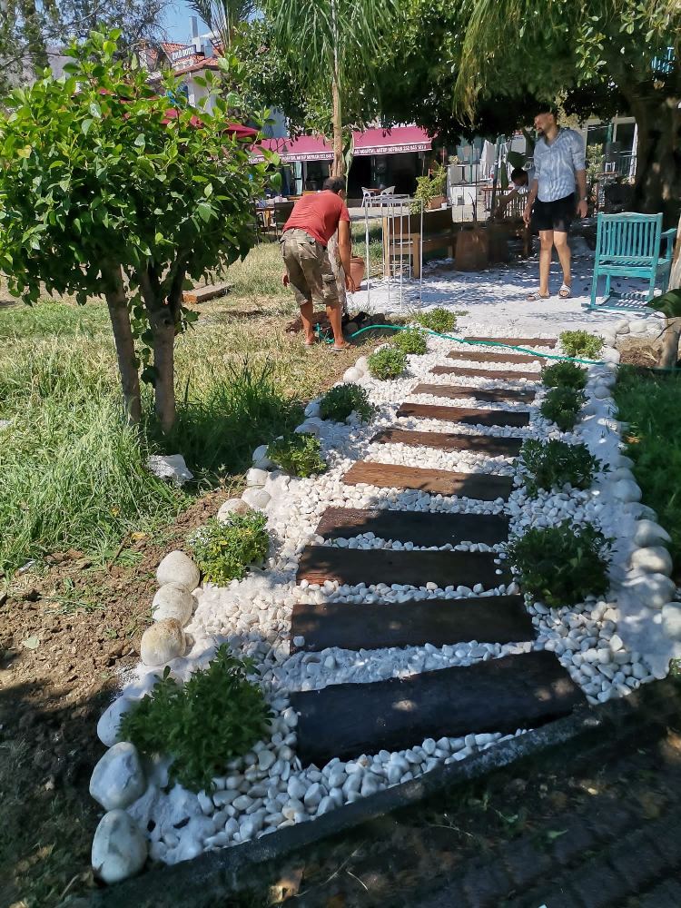 Uygulama alanlarında yürüyüş yolları, oturma alanları için doğal taşlar, parke ve bordür döşeme gibi hizmetler verilmektedir.