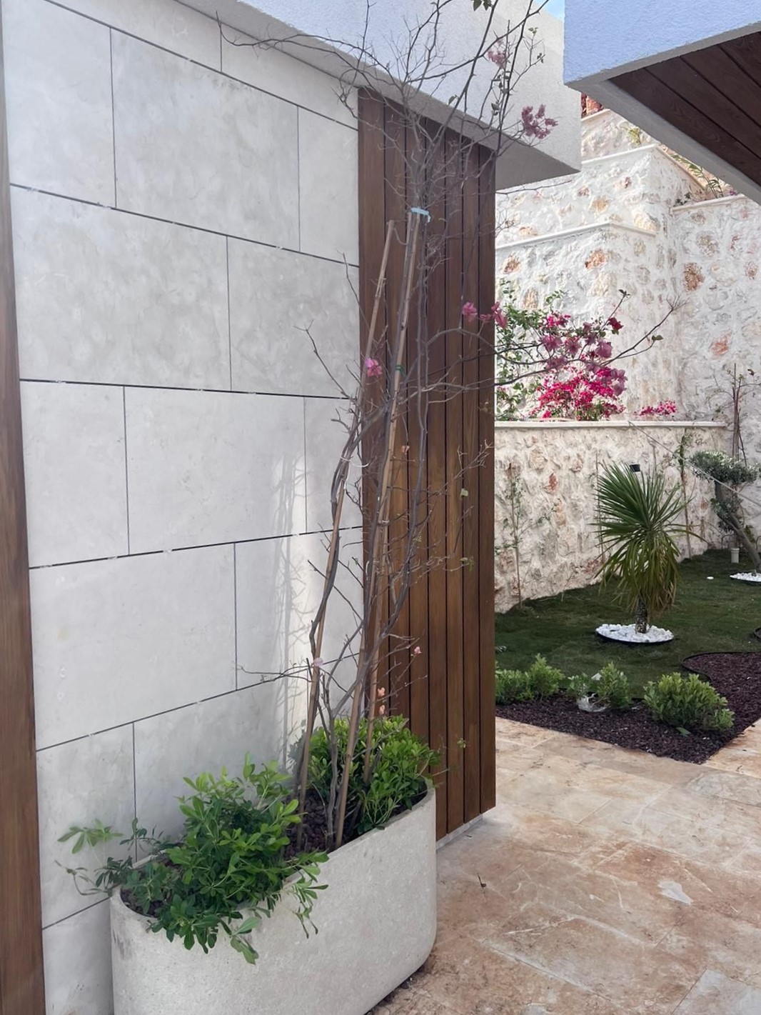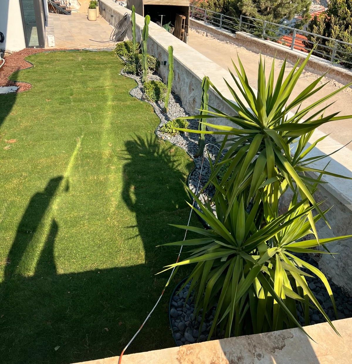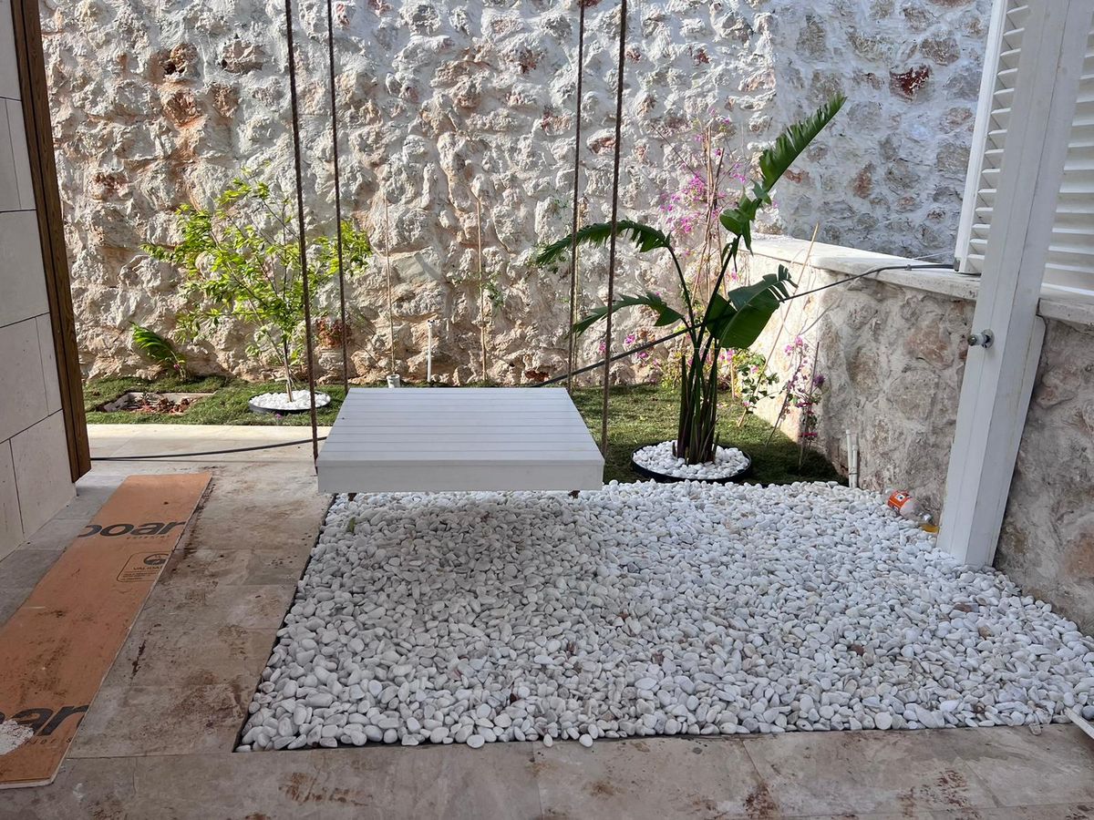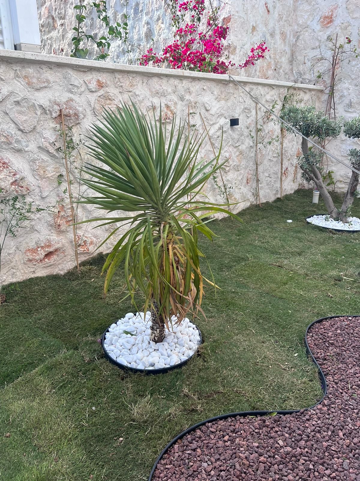 Proje kapsamında, estetik ve fonksiyonel açıdan zengin bir dış mekân oluşturmak amacıyla çeşitli peyzaj uygulamaları gerçekleştirilmiştir. İlk olarak, alanın doğal güzelliğini artırmak için bitkisel uygulamalar yapılmış ve dikkatle seçilen bitkiler alanın farklı bölgelerine yerleştirilmiştir. Daha sonra, alana canlı bir görünüm kazandırmak amacıyla rulo çim uygulaması yapılmıştır. Bu sayede, zemin hızlı ve etkili bir şekilde yeşillendirilmiştir. Estetik dokunuşlar eklemek ve alanın görselliğini zenginleştirmek için taş uygulamaları gerçekleştirilmiştir. Bu uygulamalarla birlikte, proje alanı göz alıcı bir yaşam alanına dönüştürülmüştür.