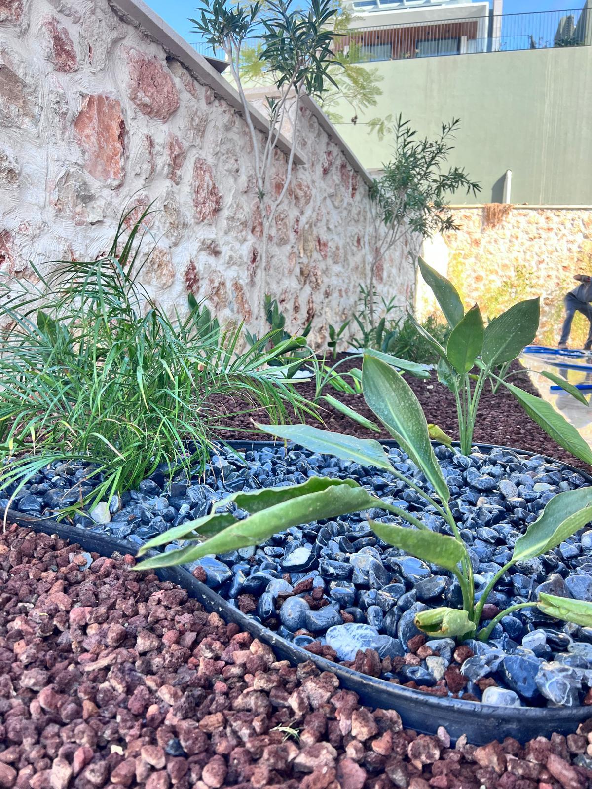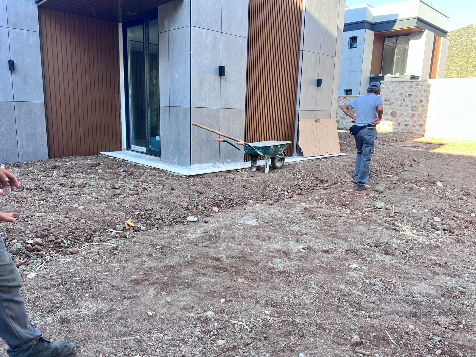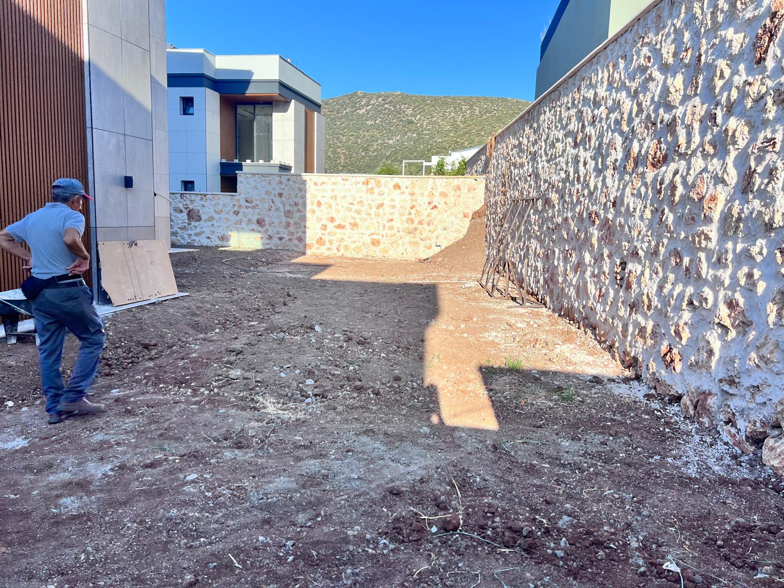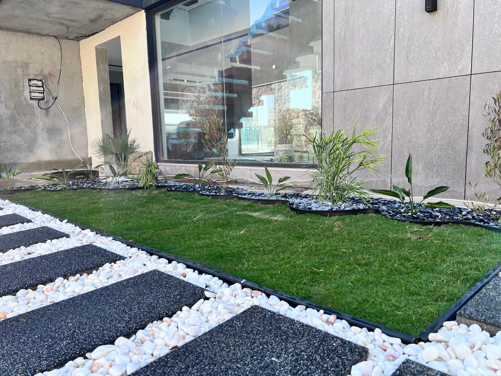 Kalkandaki müşterimizin villa peyzaj süreci ilk olarak projeyle başlayıp uygulamayla devam etmiştir. Başta müşteri istekleri dinlenmiş olup bu isteklere göre tasarım oluşturulmuştur .Bitkilendirme ve rulo çim uygulaması yanında adım taşı uygulamasıda yapılmıştır. Bu villada dikkat edilmesi gereken ilk husus manzaranın kapanmamasıdır. Manzara öncelik olduğundan dolayı tasarım aşamasında çalıların kullanımı uygun görülmüştür . Müşterimiz villasını kiralayacağı için çok fazla dikenli ve zehirli bitkiler kullanılmamaya özen gösterilmiştir. Kalkanda arazi yapısından dolayı yüksek duvarlar oluştuğu için duvar görüntüsünü kırmak amaçlı bambu kullanımı tercih edilmiştir. Ara ara sarmaşık olarak arap yasemini, begonviller çalı olarak meksika petunyası ve dodonea viscosa kullanımı ile renk oluşturulmak istenmiştir.Ayrıca kapı girişlerini biraz gösterişli olması için afrika zambağı ve bodur akdeniz palmiyesi kullanılmıştır.Adım taşı uygulamasında yol oluştuktan sonra aralıklarla top şimşir kullanımı ile yol vurgulanmıştır.Aynı zamanda müşterimizin bahçesinin bir bölümünü meyve bahçesi olarak oluşturduk.En son rulo çim serimi ile bir peyzaj uygulamasını teslim etmiş olduk.