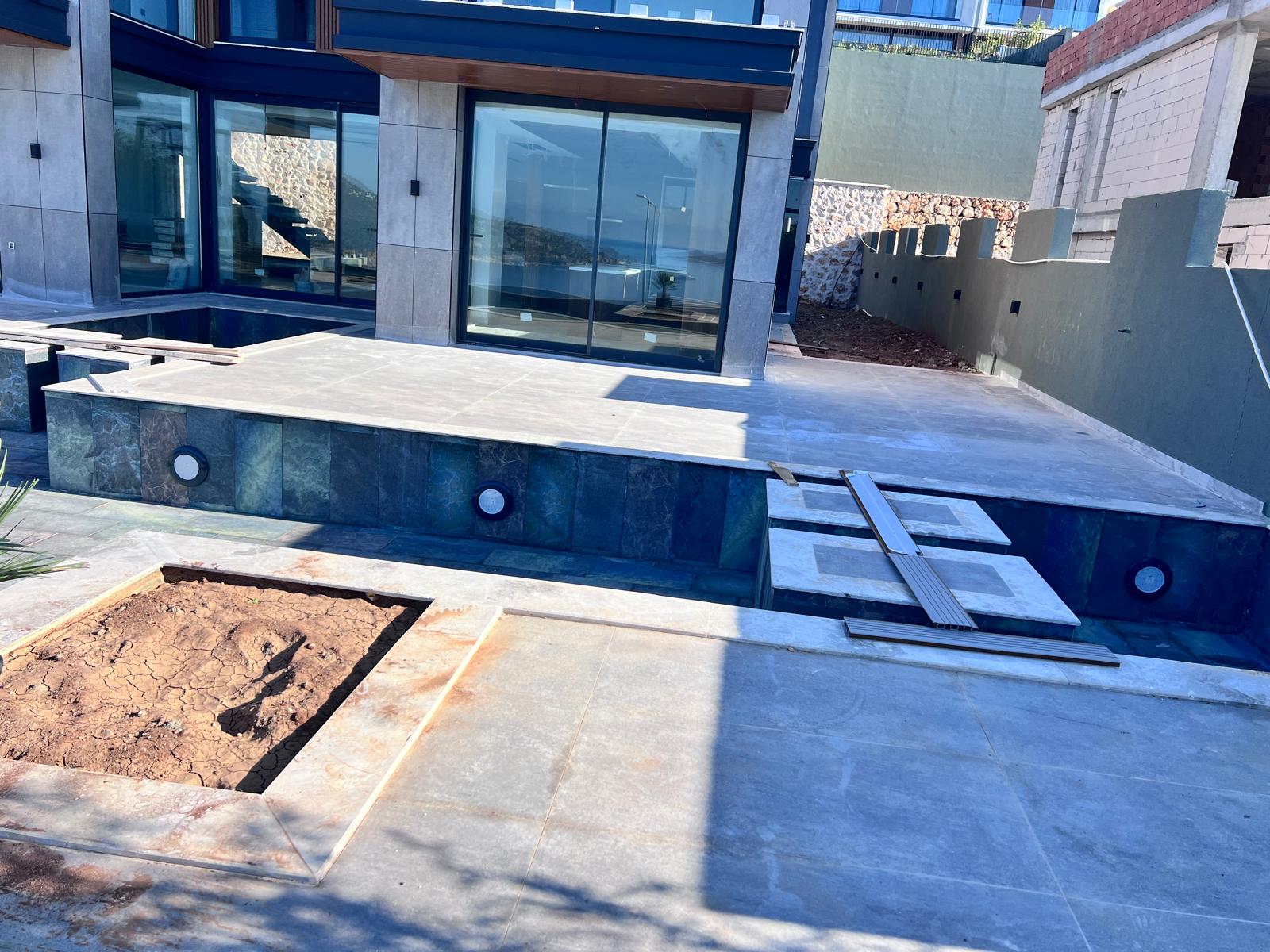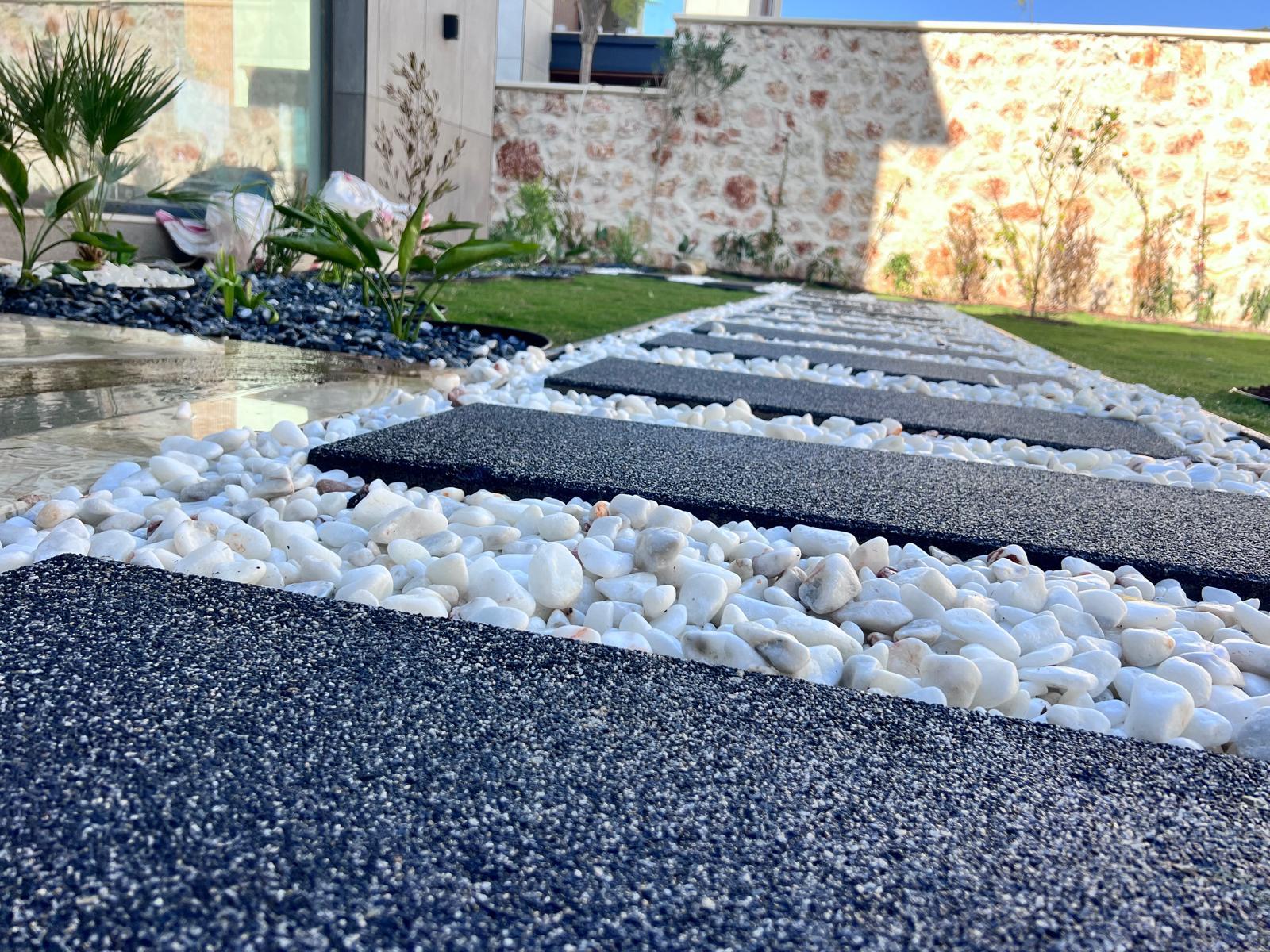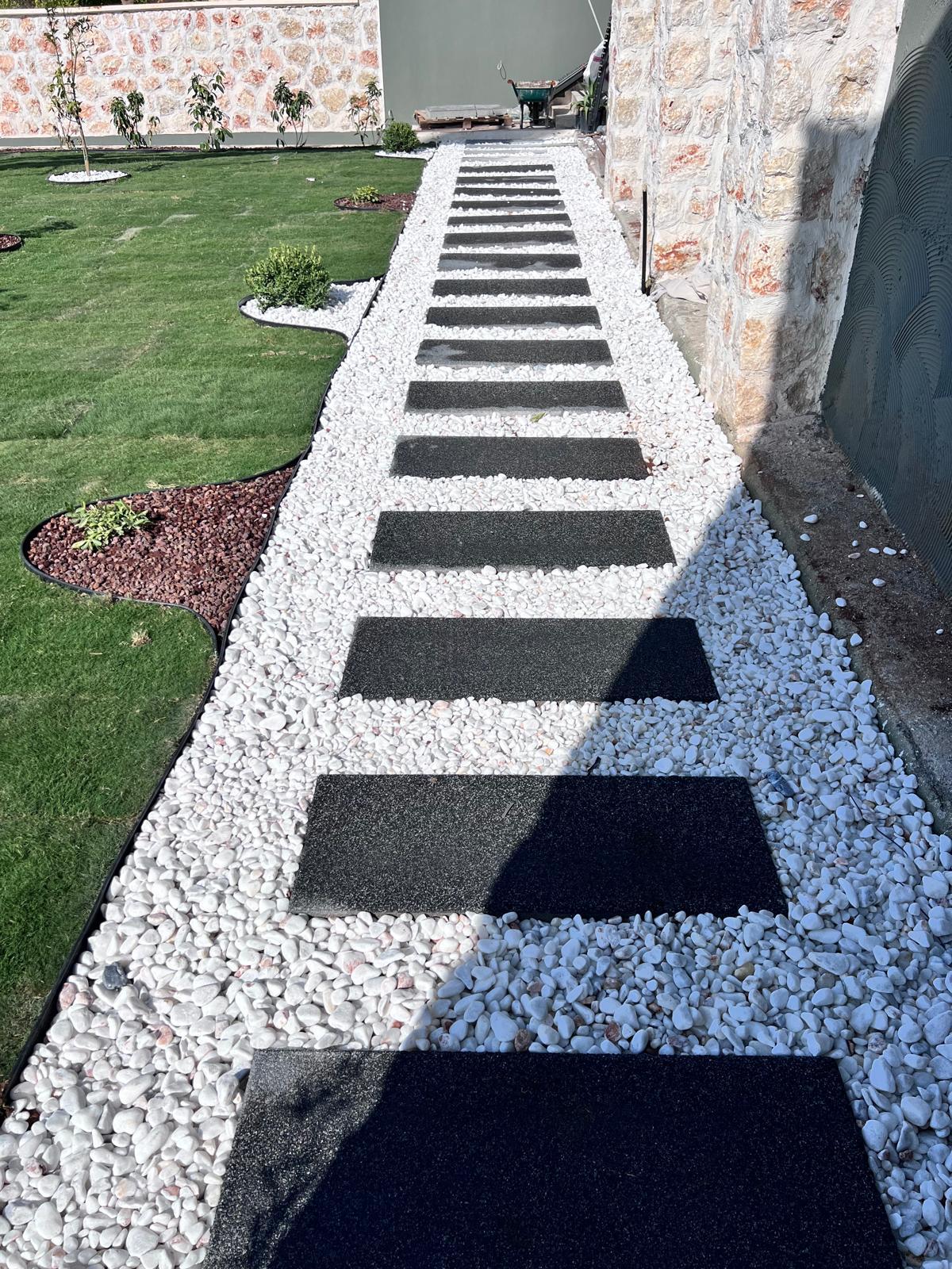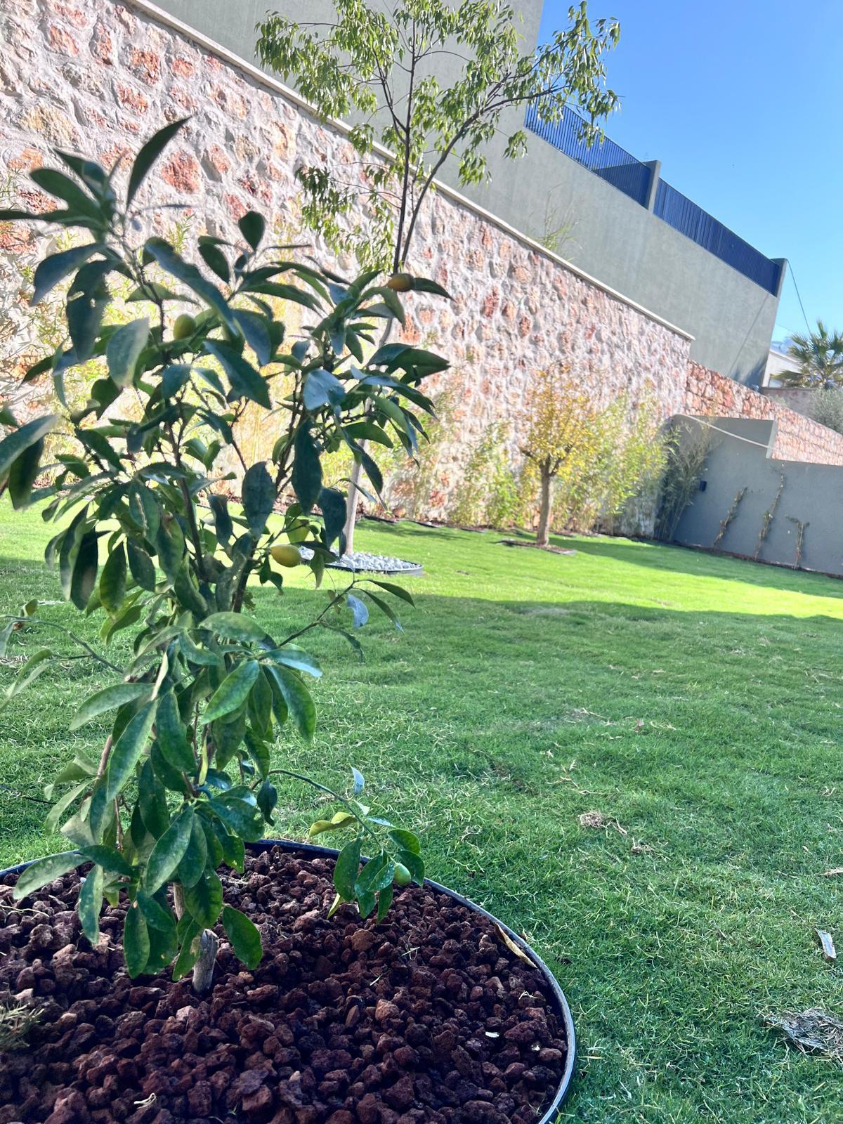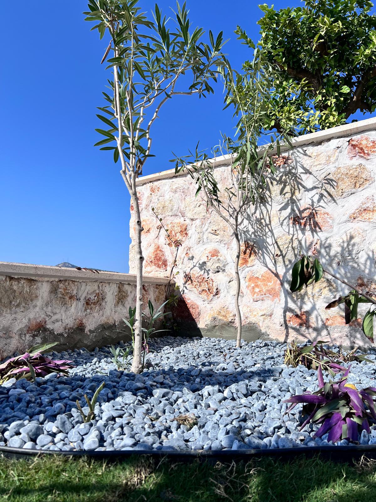 Kalkandaki müşterimizin villa peyzaj süreci ilk olarak projeyle başlayıp uygulamayla devam etmiştir. Başta müşteri istekleri dinlenmiş olup bu isteklere göre tasarım oluşturulmuştur .Bitkilendirme ve rulo çim uygulaması yanında adım taşı uygulamasıda yapılmıştır. Bu villada dikkat edilmesi gereken ilk husus manzaranın kapanmamasıdır. Manzara öncelik olduğundan dolayı tasarım aşamasında çalıların kullanımı uygun görülmüştür . Müşterimiz villasını kiralayacağı için çok fazla dikenli ve zehirli bitkiler kullanılmamaya özen gösterilmiştir. Kalkanda arazi yapısından dolayı yüksek duvarlar oluştuğu için duvar görüntüsünü kırmak amaçlı bambu kullanımı tercih edilmiştir. Ara ara sarmaşık olarak arap yasemini, begonviller çalı olarak meksika petunyası ve dodonea viscosa kullanımı ile renk oluşturulmak istenmiştir.Ayrıca kapı girişlerini biraz gösterişli olması için afrika zambağı ve bodur akdeniz palmiyesi kullanılmıştır.Adım taşı uygulamasında yol oluştuktan sonra aralıklarla top şimşir kullanımı ile yol vurgulanmıştır.Aynı zamanda müşterimizin bahçesinin bir bölümünü meyve bahçesi olarak oluşturduk.En son rulo çim serimi ile bir peyzaj uygulamasını teslim etmiş olduk.