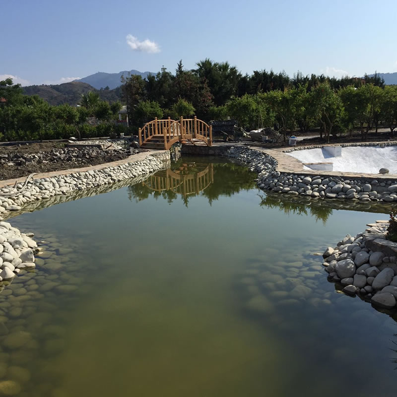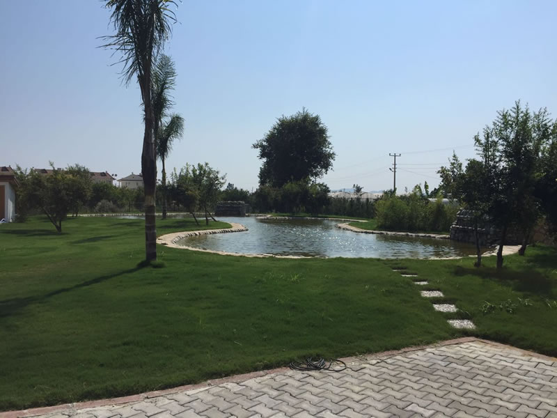 Bu proje kapsamında, 2000 m2‘lik bir alanda toprak tesviyesi, rulo çim uygulaması, proje çizimi ve bitkisel düzenleme, doğal taş uygulamaları, yapay süs havuzu ve şelale uygulaması ile sulama sistemi kurulumu gerçekleştirilmiştir. Proje, 60 gün içerisinde tamamlanmıştır.