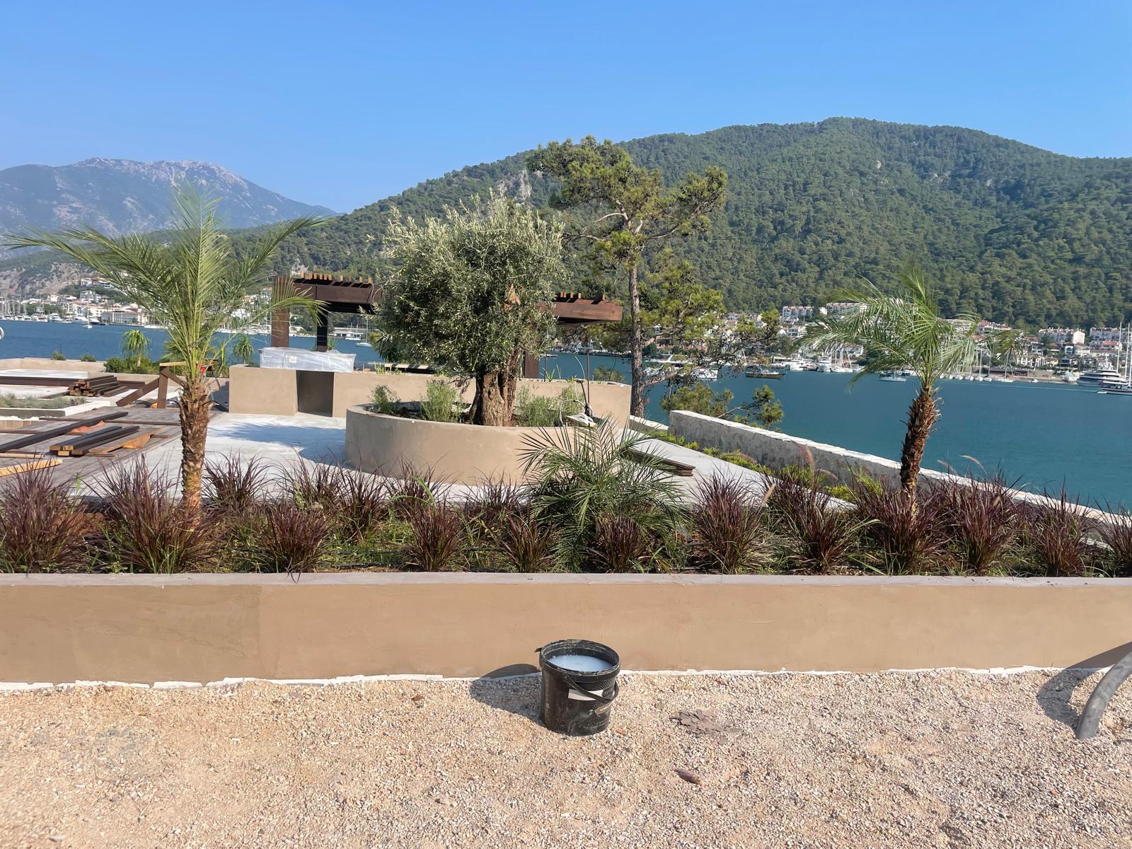 Peyzaj Projesi, denizle doğayı bir araya getirerek kullanıcılarına sadece bir marina değil, aynı zamanda huzurlu ve estetik bir yaşam alanı sunmayı amaçlamaktadır. Proje kapsamında yürüyüş yolları, seyir terasları, gölgelikli oturma alanları, çocuk oyun alanları ve sosyal buluşma noktaları gibi çeşitli işlevsel alanlar tasarlanmıştır. Yerel iklime uygun, düşük su tüketimli bitkilerle oluşturulan yeşil alanlar hem doğal peyzajı desteklemekte hem de sürdürülebilir bir çevre anlayışını yansıtmaktadır. Ahşap ve doğal taş gibi malzemelerin öne çıktığı çevre düzenlemesi, marina alanını sıcak, davetkâr ve zamansız bir estetikle buluştururken, çevre dostu uygulamalar sayesinde ekolojik dengeye katkı sağlanmaktadır. Marina artık sadece teknelerin uğradığı bir liman değil; doğayla iç içe vakit geçirebileceğiniz, dinlenebileceğiniz ve sosyal yaşama dahil olabileceğiniz yepyeni bir kıyı deneyimidir.
