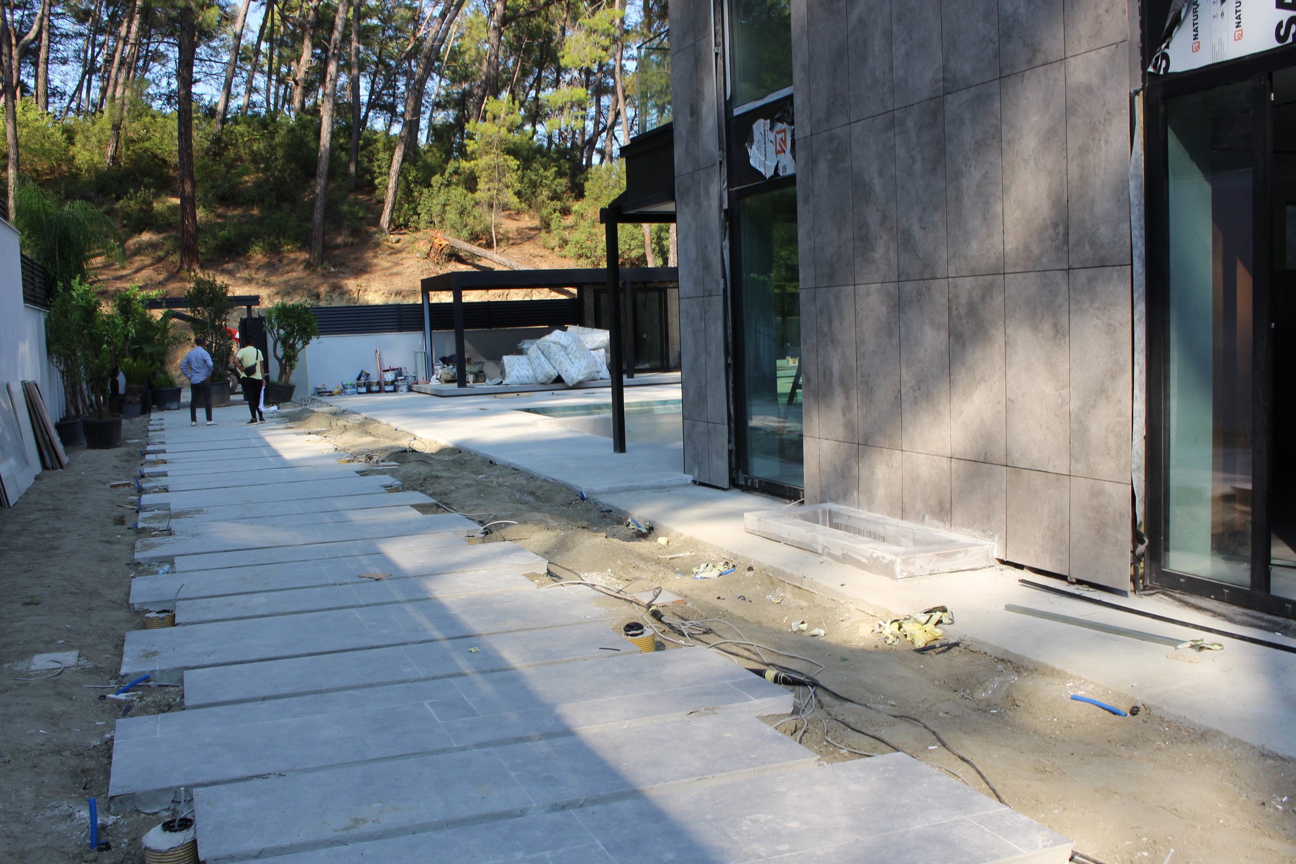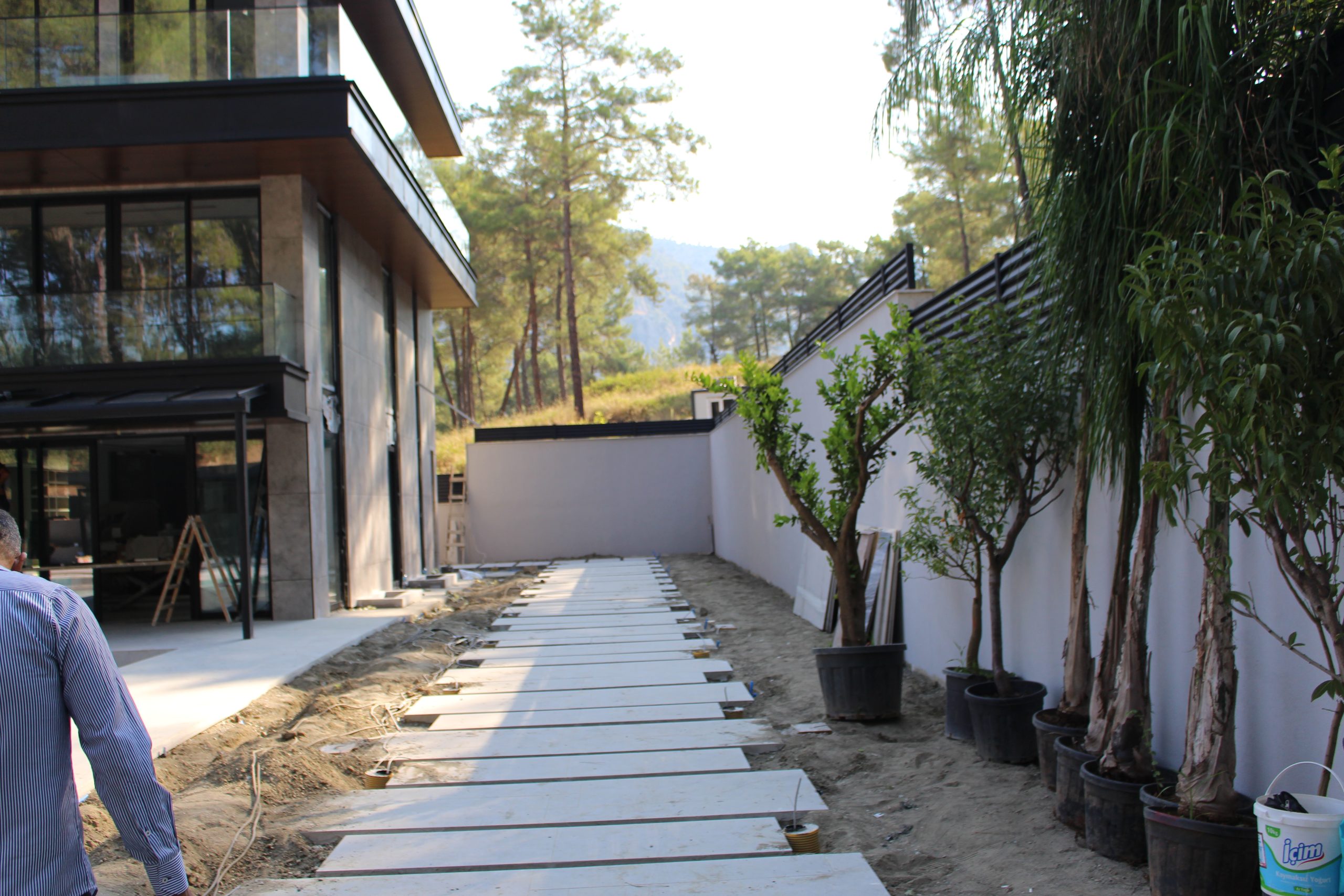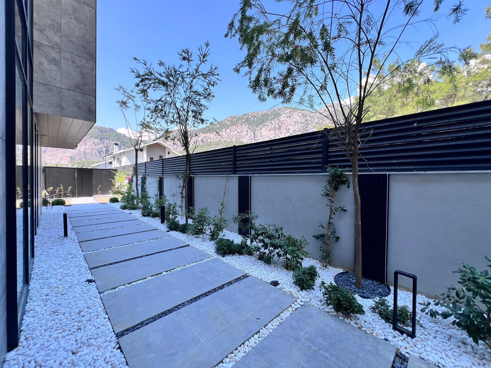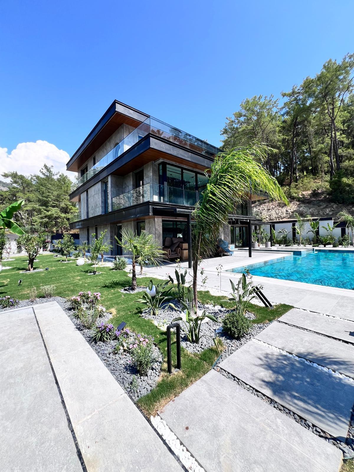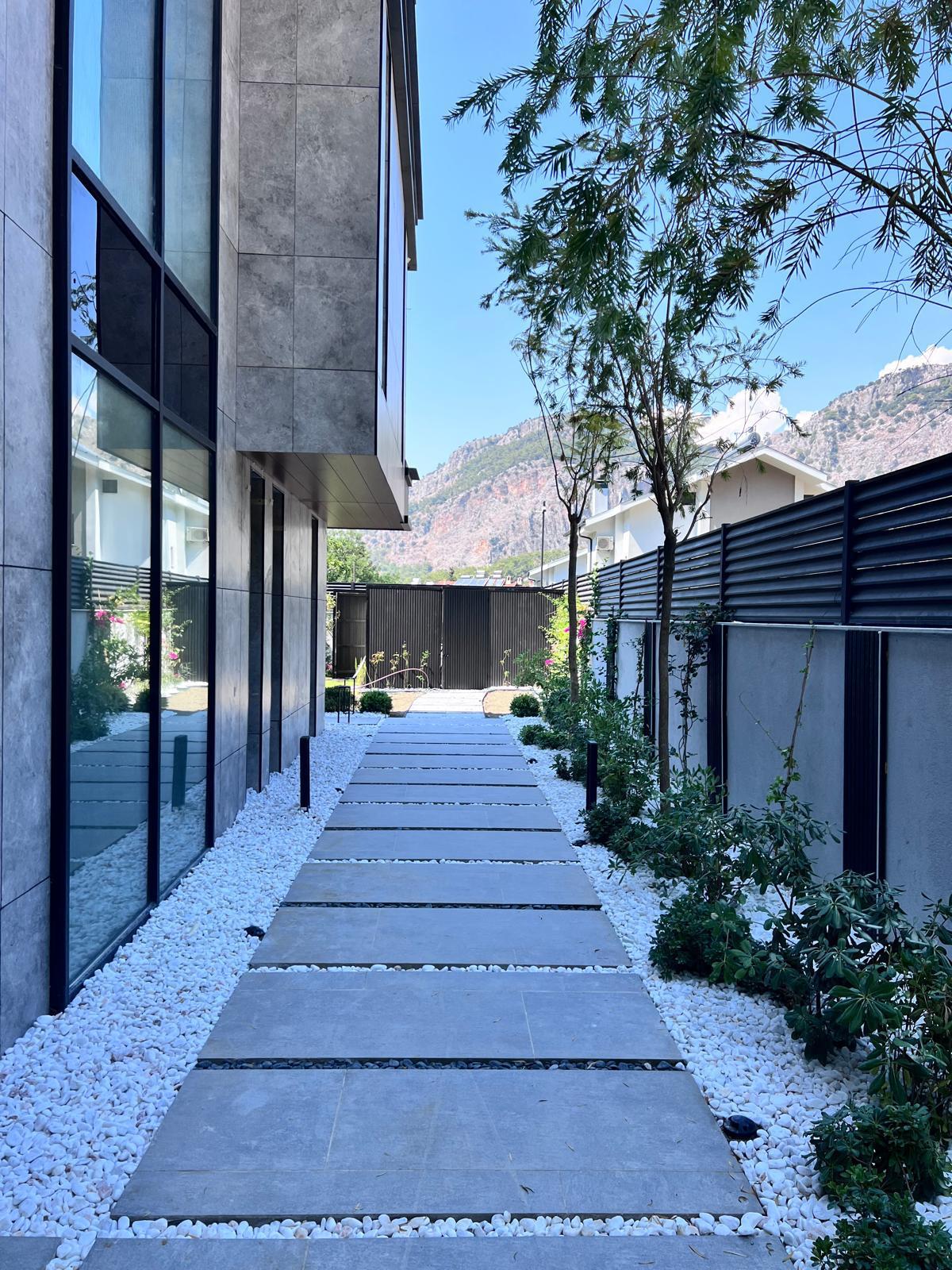 Göcek’in en güzel köşelerinden birinde yer alan bu villa, özenle hazırlanmış bir proje çizimi ile hayat bulmuş ve ardından uygulama aşamasına geçilmiştir. Tasarımda tropikal bitkiler ön planda tutulmuş; dev cennet kuşu çiçeği, ficus bonsai, zeytin bonsai, kraliçe palmiyesi, sicas, cüce hurma, tilki kuyruğu palmiyesi, altınfıçı kaktüsü ve kaya kaktüsü gibi zengin bir bitki çeşitliliği kullanılmıştır. Bahçenin bir kısmı görsel bir cennet olarak tasarlanırken, diğer bölümü meyve bahçesi olarak düzenlenmiştir. Havuz başındaki saksı bitkileri, bu alanı daha da zenginleştirmiştir. Meyve bahçesinin yanında, yemyeşil bir çim alan oluşturulmuş, pomza, bazalt ve dolamit taşları ile estetik bir düzenleme sağlanmıştır. En son olarak, rulo çim serimi ile hayal edilen bahçe tamamlanmış ve müşteriye teslim edilmiştir. Bu proje, doğayla iç içe huzurlu bir yaşam alanı sunmaktadır.