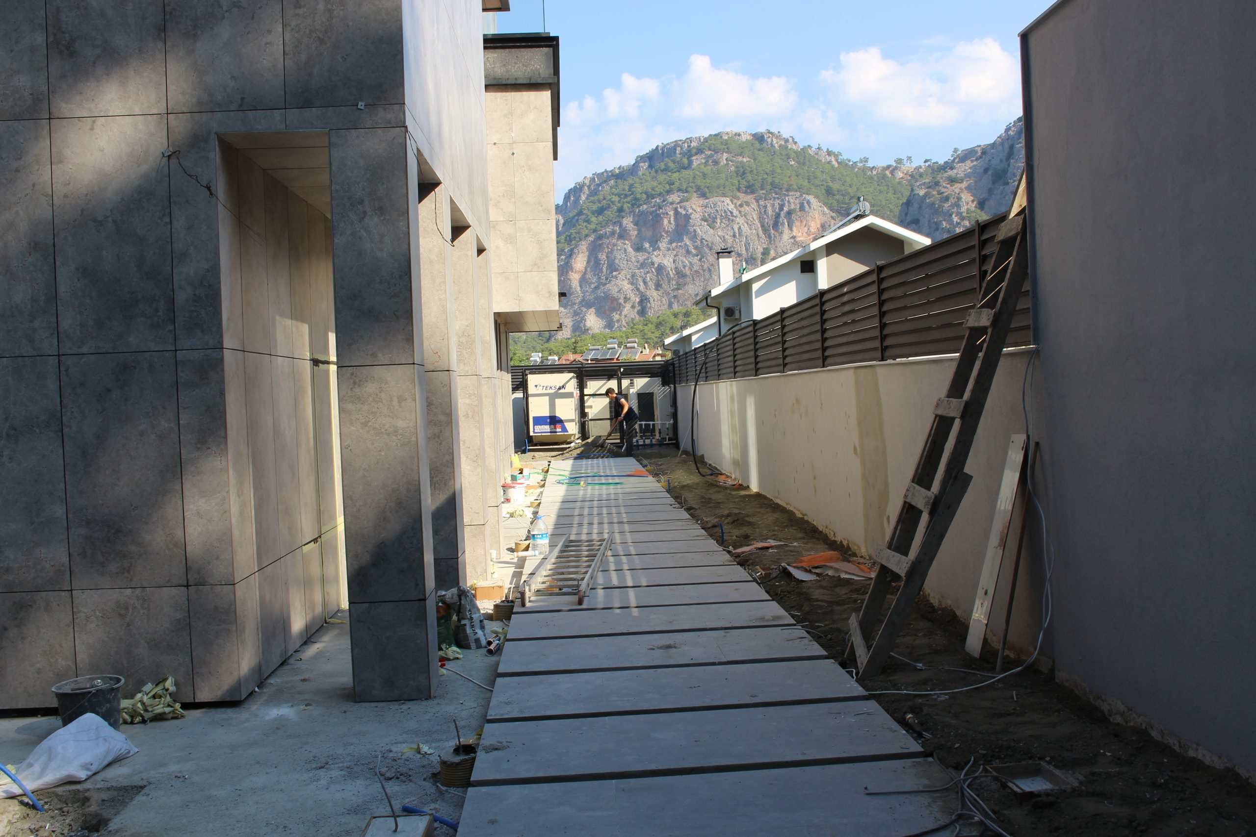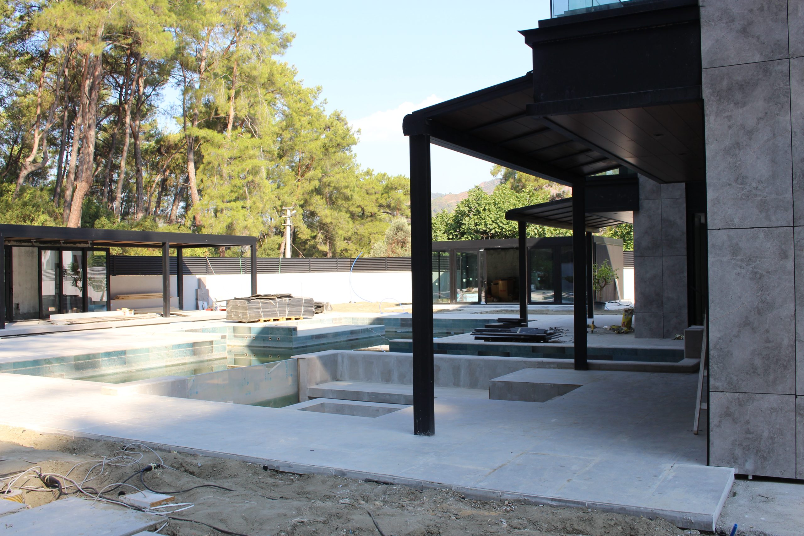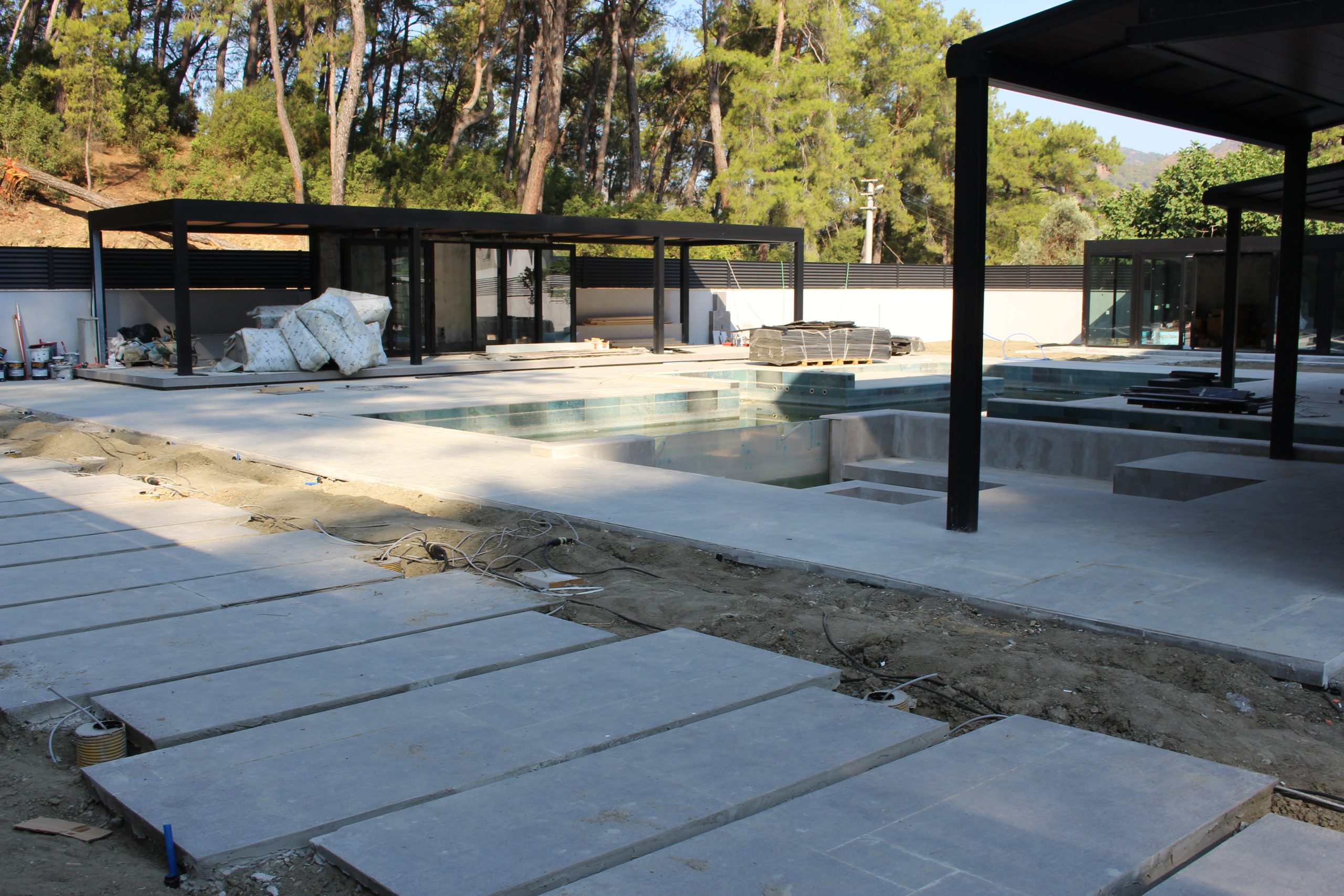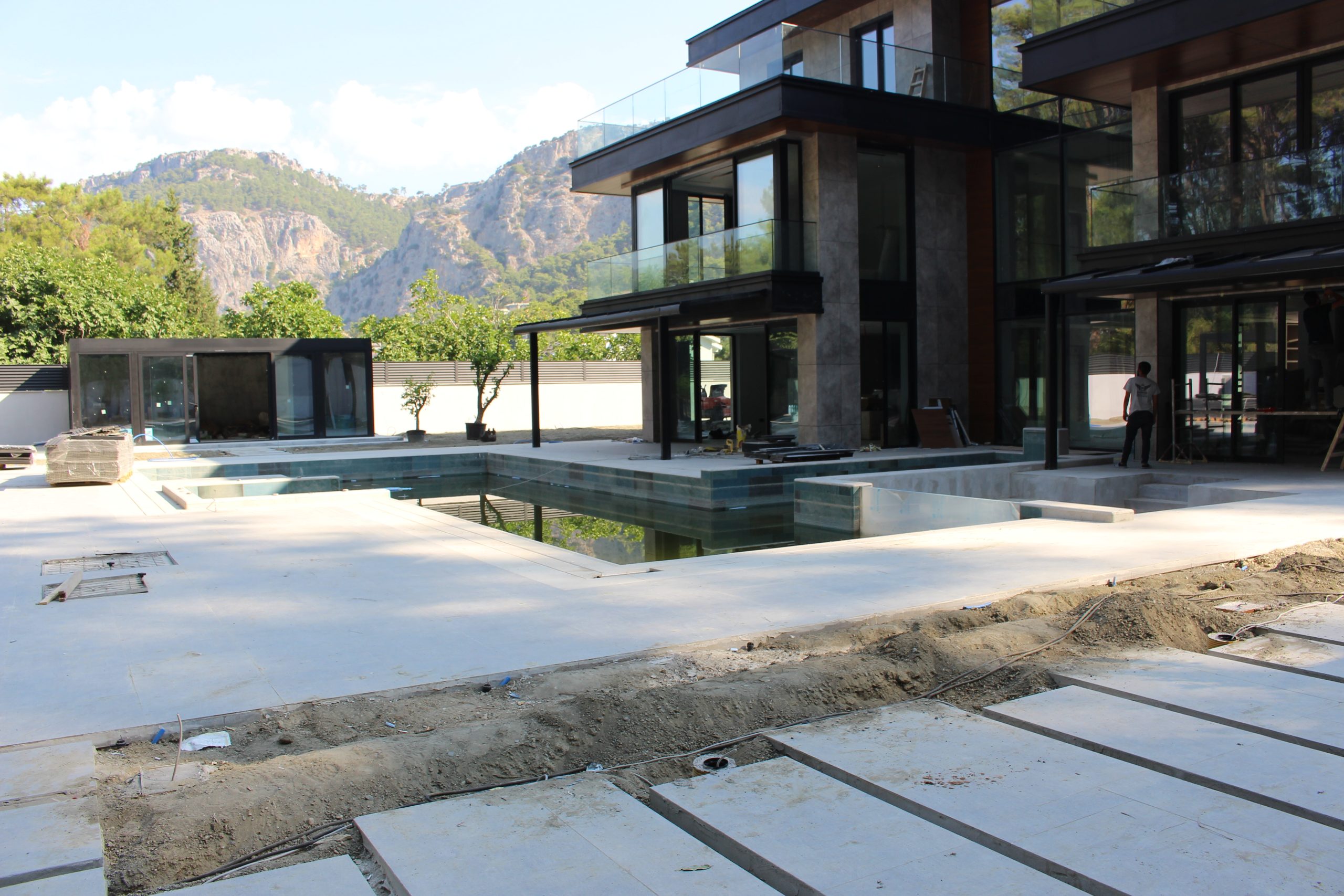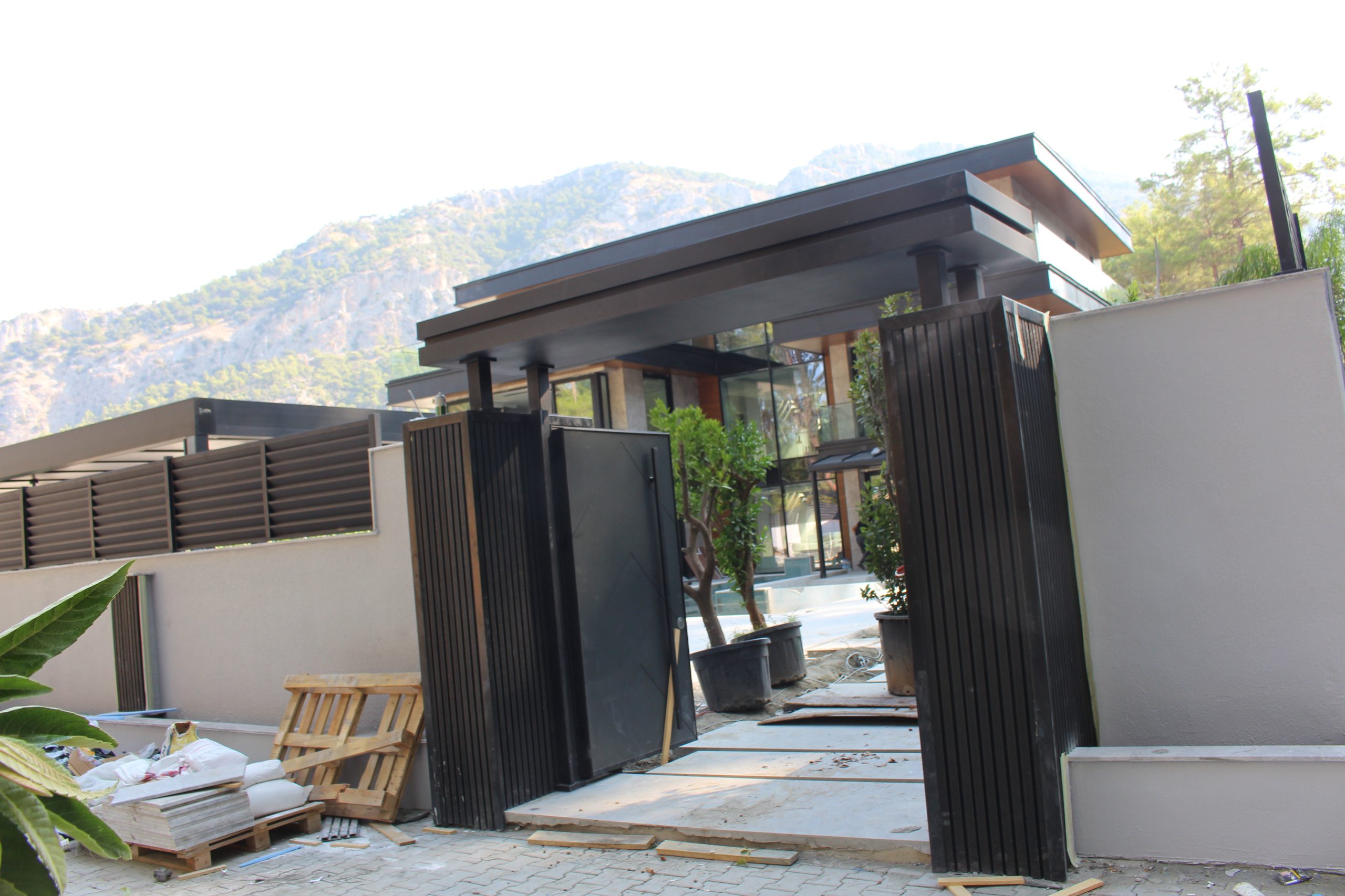 Göcek’in en güzel köşelerinden birinde yer alan bu villa, özenle hazırlanmış bir proje çizimi ile hayat bulmuş ve ardından uygulama aşamasına geçilmiştir. Tasarımda tropikal bitkiler ön planda tutulmuş; dev cennet kuşu çiçeği, ficus bonsai, zeytin bonsai, kraliçe palmiyesi, sicas, cüce hurma, tilki kuyruğu palmiyesi, altınfıçı kaktüsü ve kaya kaktüsü gibi zengin bir bitki çeşitliliği kullanılmıştır. Bahçenin bir kısmı görsel bir cennet olarak tasarlanırken, diğer bölümü meyve bahçesi olarak düzenlenmiştir. Havuz başındaki saksı bitkileri, bu alanı daha da zenginleştirmiştir. Meyve bahçesinin yanında, yemyeşil bir çim alan oluşturulmuş, pomza, bazalt ve dolamit taşları ile estetik bir düzenleme sağlanmıştır. En son olarak, rulo çim serimi ile hayal edilen bahçe tamamlanmış ve müşteriye teslim edilmiştir. Bu proje, doğayla iç içe huzurlu bir yaşam alanı sunmaktadır.
