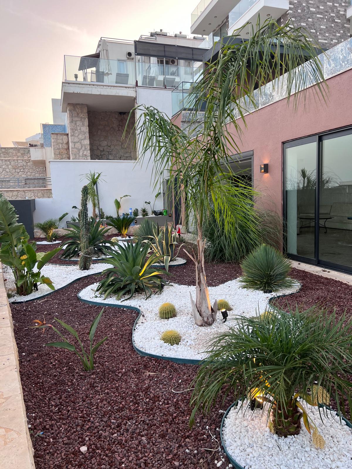 Bu projede, proje çizimi ve bitkisel uygulama titizlikle planlanmış ve başarıyla gerçekleştirilmiştir. Ayrıca taş uygulaması da projenin önemli bir parçası olarak tamamlanmıştır. Özenle seçilen bitkiler ve estetik düzenlemelerle birlikte, doğal taşların kullanımıyla alanın estetik ve fonksiyonel olarak geliştirilmesi hedeflenmiştir. Kaliteli malzemeler ve detaylı planlama ile projenin her aşamasında müşteri memnuniyeti gözetilmiştir.