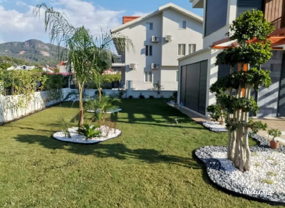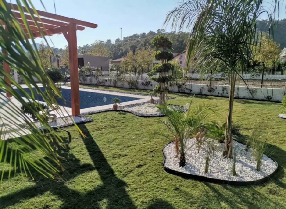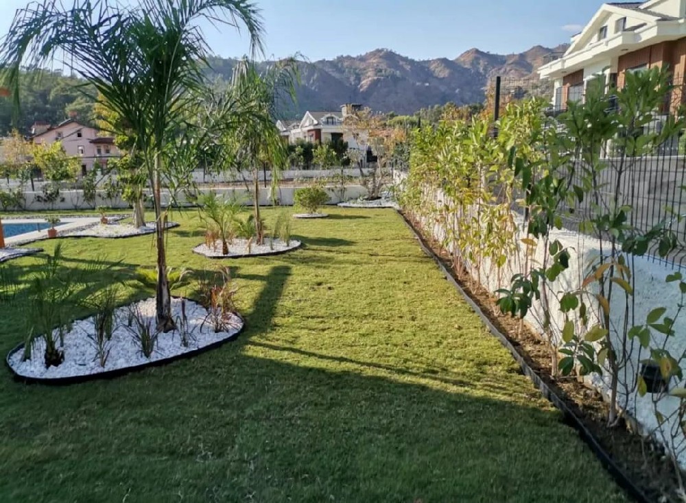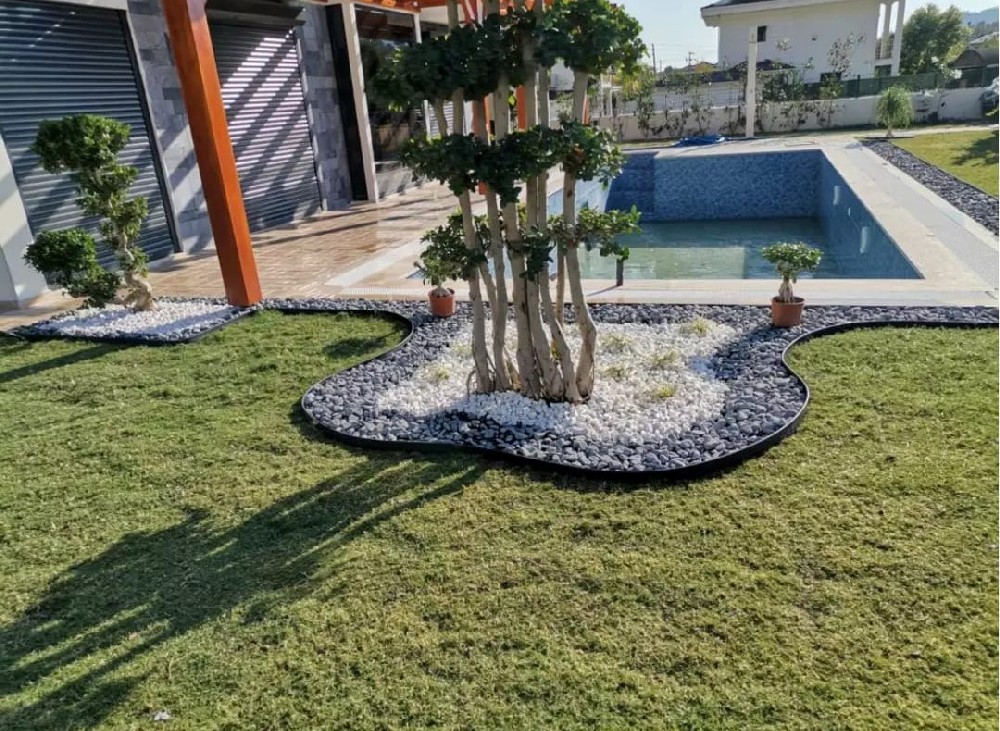 Bu projede, proje çizimi ve bitkisel uygulama süreçleri titizlikle yürütülmüş, müşterinin istekleri doğrultusunda özenle tasarlanmıştır. Ayrıca doğal taş uygulamaları ve rulo çim uygulaması da projenin önemli bir parçası olmuştur. Her bir aşamada kaliteli malzemeler kullanılarak, estetik ve işlevsel bir peyzaj düzenlemesi sağlanmıştır.