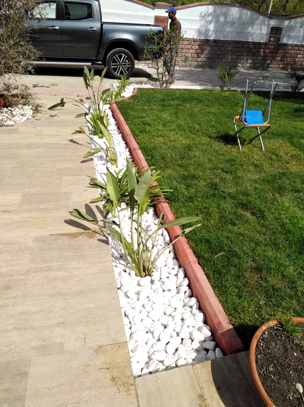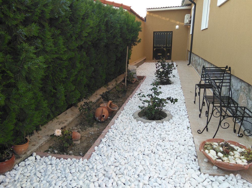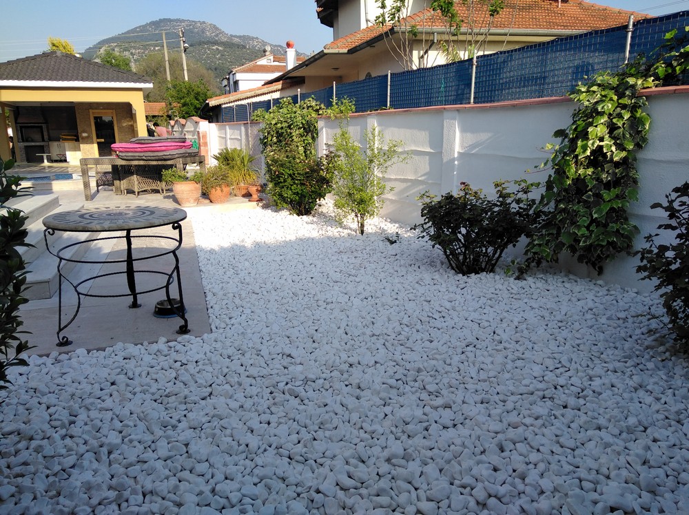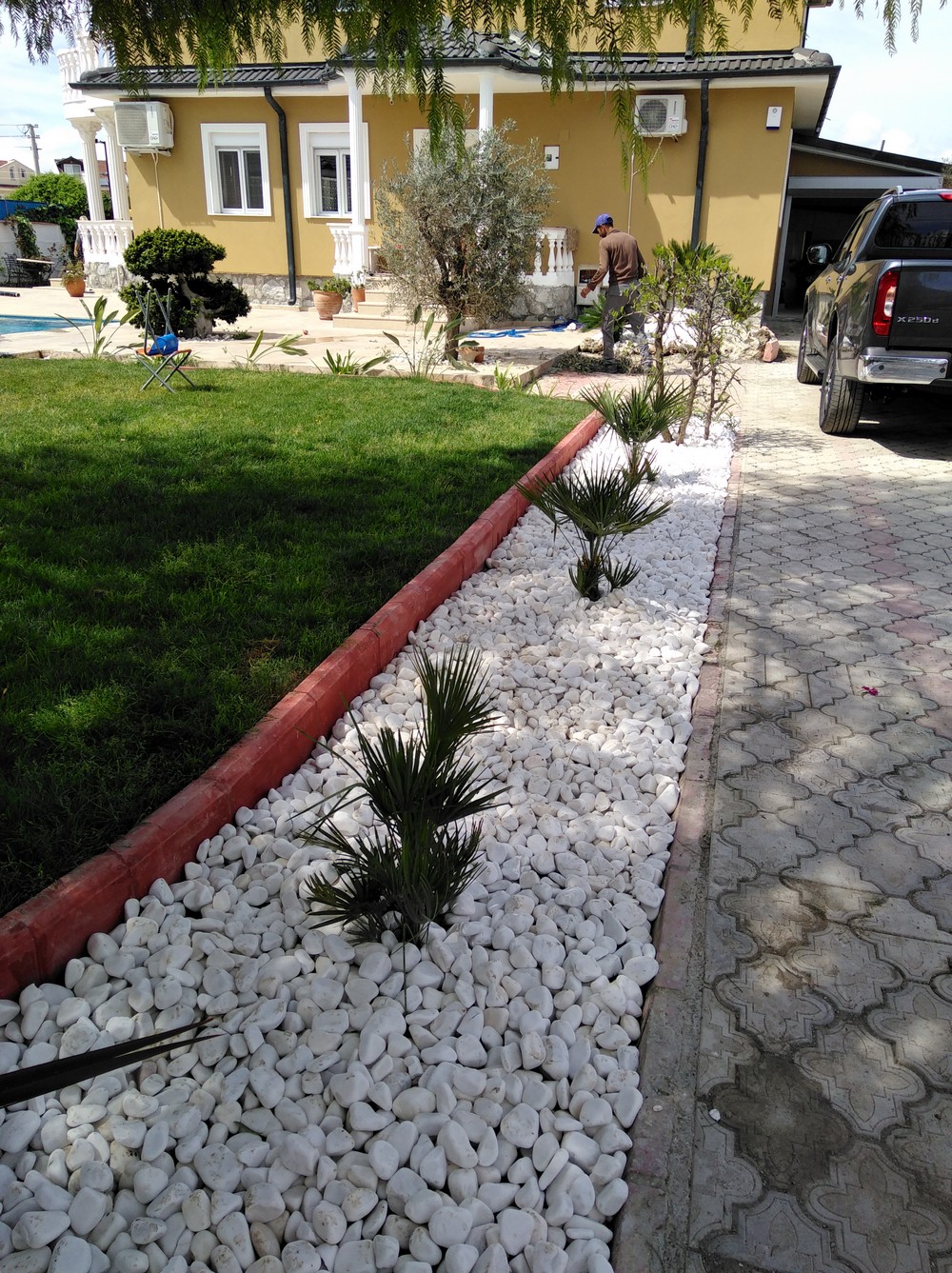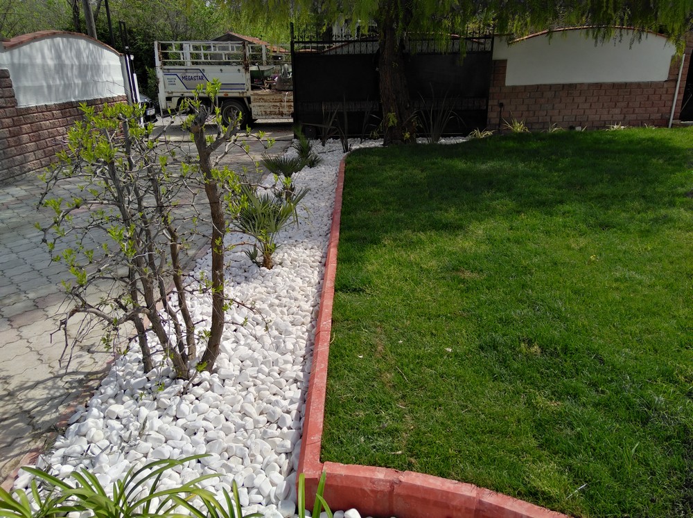 Bu projede bitkisel uygulama ve rulo çim uygulama özenle gerçekleştirilmiştir. Seçilen bitkilerle birlikte estetik bir peyzaj oluşturulmuş, yeşil alanlar için rulo çim kullanılmıştır. Doğal çevreye uygun taşlarla yapılan uygulama, projeye şık bir görünüm kazandırmıştır.