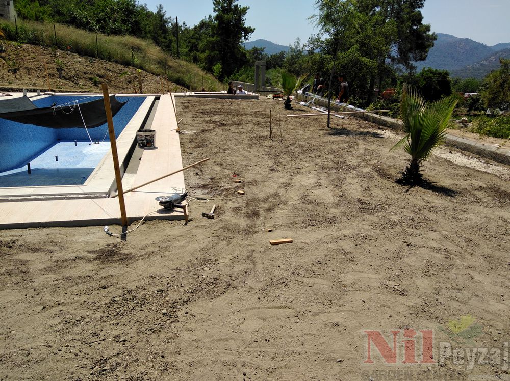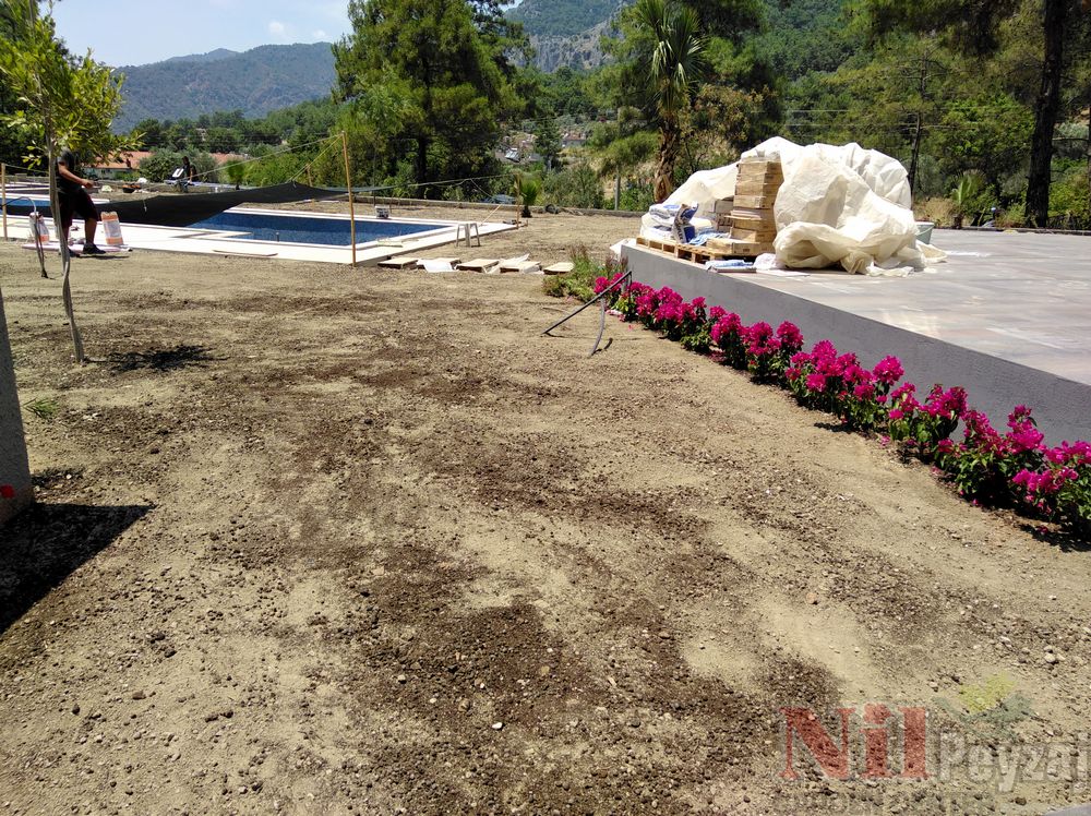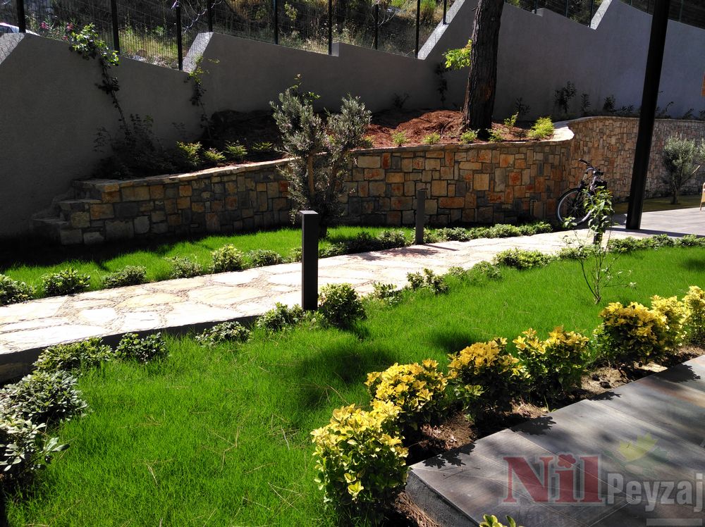 Proje çizim ve bitkisel uygulama ile rulo çim uygulaması, 950 m²’lik alanda 15 gün içinde başarıyla tamamlanmıştır.